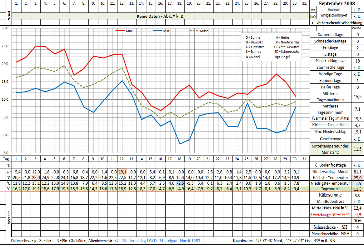 Archiv - Wetter Glashütten/Ofr - Datenblatt September 2008
